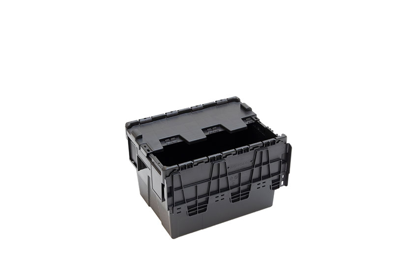 - Einzigartiges Deckeldesign: lässt sich beim Stapeln vollständig flach neben den Behälter klappen, wodurch Beschädigungen am Behälter reduziert werden und zusätzlicher Platz beim Rücktransport gespart wird