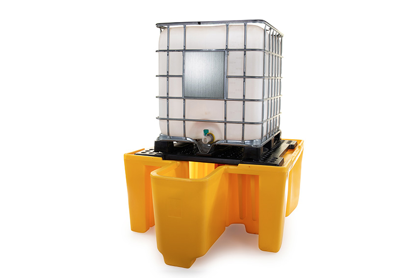 - Auffangwanne geeignet für die Aufstellung eines IBC mit maximal 1000 L Inhalt, einschließlich Auffangwanne mit Überlauf