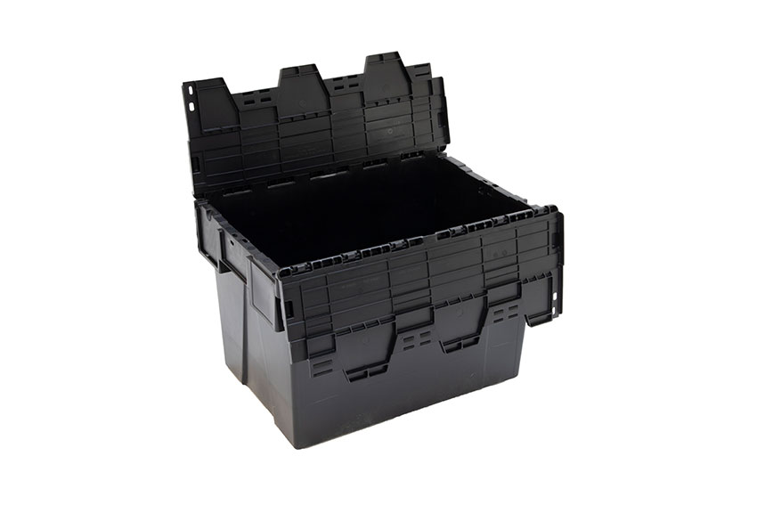 Attached lid container Ergo 69L – 600x400x400mm - black body + coloured lid - Regranulate