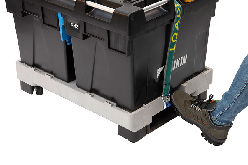- Ergonomic pedal system: full pressure brings down 2 slats Short press down folds the slats and the wheels function