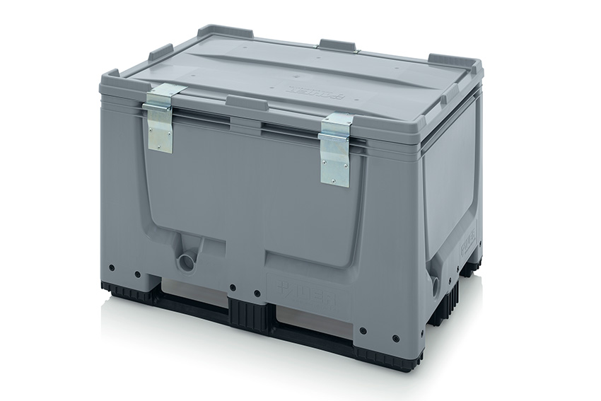• Pallet box on 3 runners with hinged lid in Euronorm format
