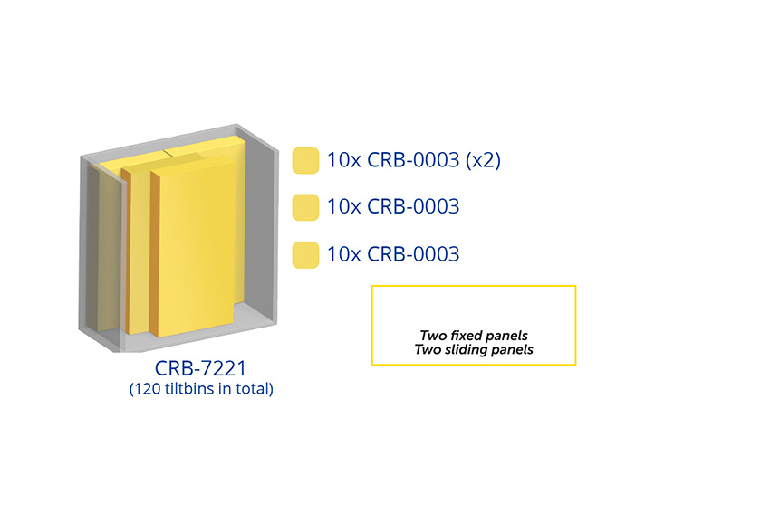- Integrated tilting tray modules per sliding panel: 10x CRB-0003 (x2)