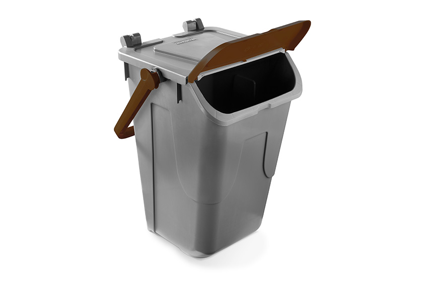 - Ergonomische handgreep die eveneens het deksel fixeert dmv een verticaal sluitsysteem