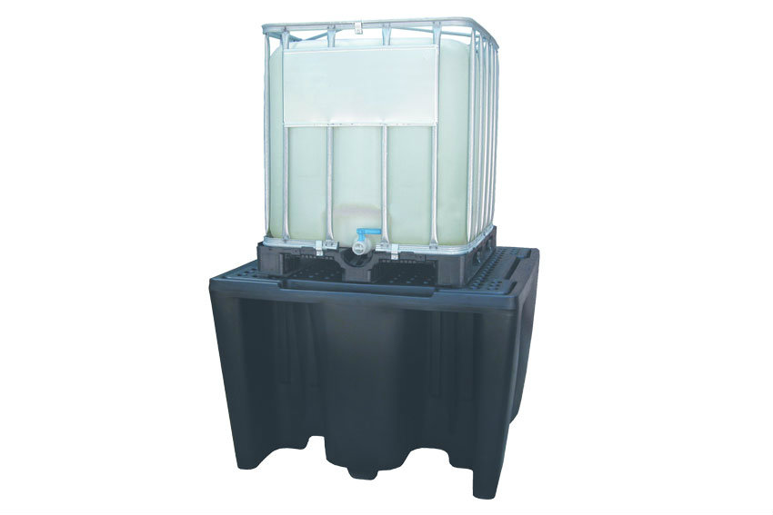 • Opvangbak geschikt voor opstelling van 1 IBC met maximaal 1000 L inhoud zonder rooster
