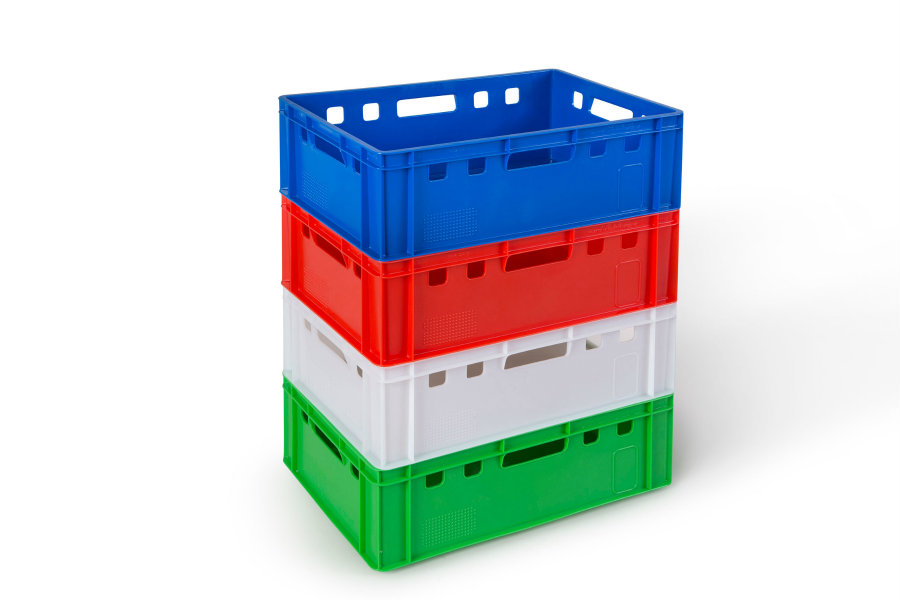 De Plastibac E2-vleesboxen bestaan in 8 standaardkleuren: rood (vlees), blauw (vis), groen (groenten) en geel (gevogelte) maar ook wit, beige, lichtblauw en zwart. De diverse kleuren helpen om snel en eenvoudig het onderscheid te maken tussen diverse inhouden én vooral ook om kruisbesmettingen tegen te gaan. De E2-kratten 600x400 zijn steeds voedingsgeschikt, voldoen perfect aan de hygiëne en Euro palletnormen en beschikken uiteraard over een officieel voedingsgeschiktheidsattest.