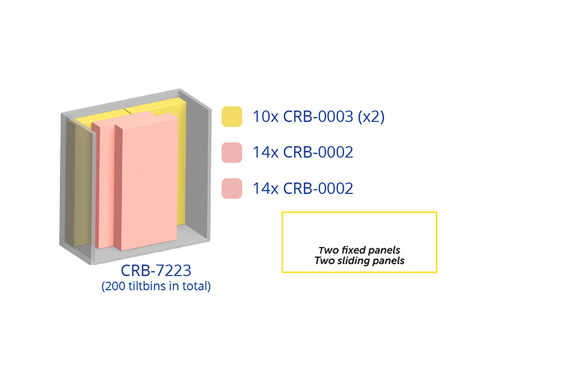 - Geïntegreerde kantelbakmodules per verschuifbaar paneel: 14x CRB-0002 (x2)