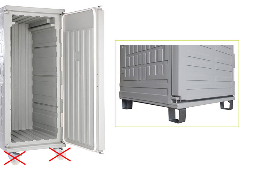 - Op 4 palletvoeten, tegen meerprijs kunnen wielen geïnstalleerd worden