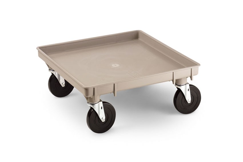 Transportonderstel voor vaatwaskorven - 4 PP zwenkwielen - PP frame - verzinkte vorken